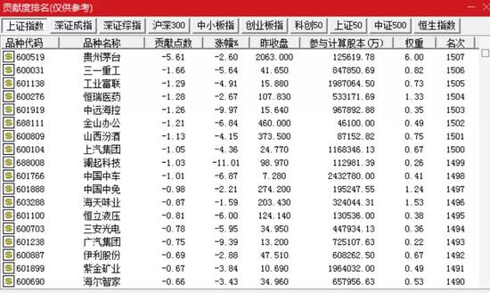 通达信数据显示,今日对沪指拖累居前的个股分别为贵州茅台、三一重工、工业富联、恒瑞医药、中远海控等。