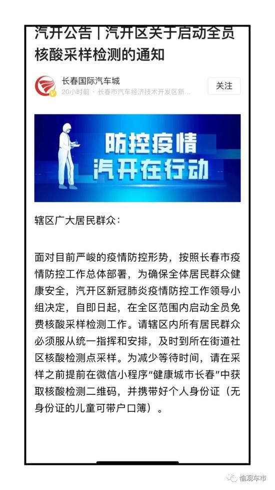 愉观车市了解到,博金物流员工被确诊后,一汽大众奥迪车间的300多位当班员工被隔离,长春国际汽车城启动了全员核酸检测,且为了保险起见,很多员工已经检测了两次核酸,所幸的是而截止目前尚未发现新增的阳性确诊人员。