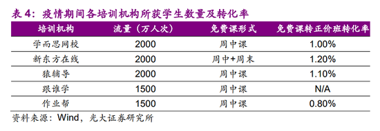 目前拖累在线教育公司盈利水平的关键因素还在于水涨船高的营销费用。Wind数据显示,疫情期间各大培训机构免费课正价班转化率仅为1%左右。