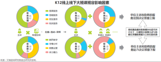 艾瑞咨询认为,未来K12在线大班机构将逐渐深化产品中的“小班”属性,并通过对不同城市、不同年级、不同学科的筛选,实现产品的差异化定价,最终形成大班培优突破、小班巩固提高、1对1纠偏补习的班型组合。截至目前,教育行业前两大巨头新东方和好未来均已集齐在线大班课、小班课以及1对1课程。