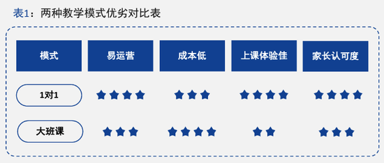 一对多形式的大班课为在线教育机构降低成本找到新出路。方正证券在《K12课外培训1对1专题深度报告》中指出,大班模式具有班容大、边际成本低、收入起量快、增长速度快的优势。但不足之处在于课堂互动性较弱、产品相对同质化、流量来源相对单一等。