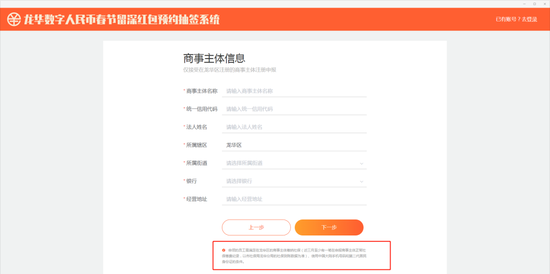 根据“深圳发布”微信公众号,1月20日上午9时至25日下午18时,商事主体管理员根据网址https://ilh.szlhq.gov.cn/digital-pc/#/Login,进入活动预约平台——“龙华区数字人民币春节留深红包预约抽签系统”,或通过“i龙华”APP(仅支持安卓系统)、“i龙华”小程序进入活动预约平台。