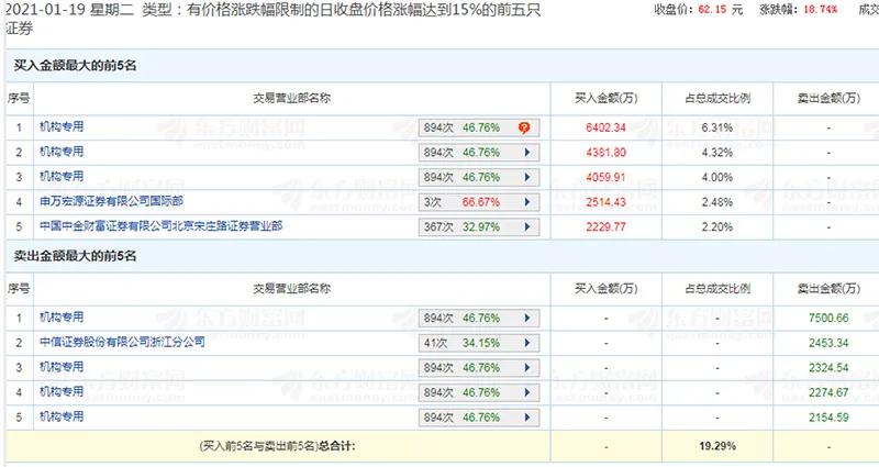 1月19日,盘后龙虎榜买卖前五机构席位的博弈剧烈:3家机构席位现身买入榜单,合计买入1.48亿元;同时,4家机构席位现身卖出榜单,合计卖出1.43亿元。