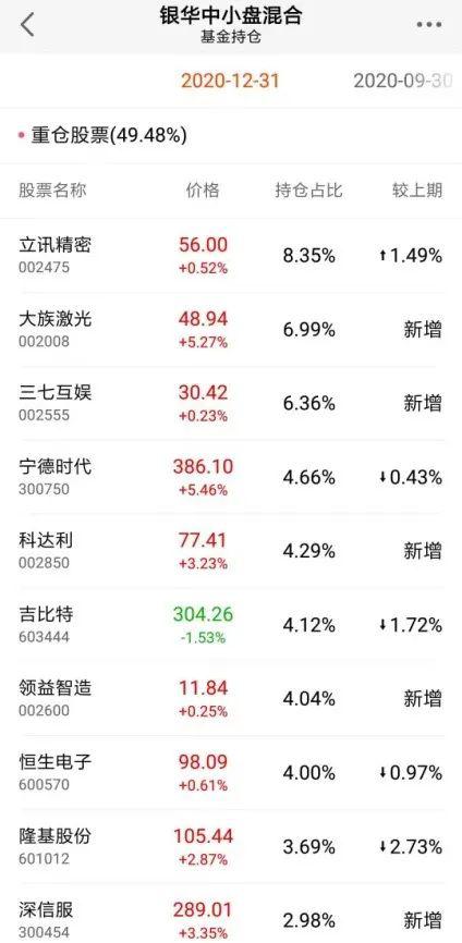 李晓星的基金管理规模近400亿元。以他管理的银华中小盘为例,四季度也减仓了此前涨幅颇高的新能源板块,去年三季度末重仓股泸州老窖也已不在前十大重仓股。