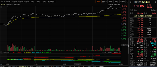 个股方面,金龙鱼、宁德时代、亿纬锂能等高位抱团股再度走强,资金高低位轮动。但市场风格并未一边倒,个股仍有逾100家涨超9%,高标开始分歧,主板看,中位股路畅科技午后率先跳水,高标宜宾纸业尾盘走弱,跟风的前期高标豫能控股跌停,创业板龙头日月明小幅调整,创业板正丹股份走出3连板,低位超跌股连板晋级率尚可,整体看,高标亏钱效应并未扩大。