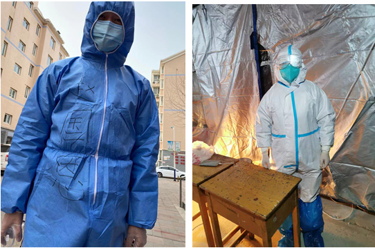 维明支行欧景园社区支行李娜,在永壁西街村委会,作为核酸检测信息员,人生第一次穿起防护服。她说:“自己万万也没有想到,会收到小朋友送的画作。这几次核酸检测下来,似乎理解了中国人的执行力,似乎三更半夜,也没有之前那么黑了,虽然谁也不认识谁,但似乎我们都是同一个人。”