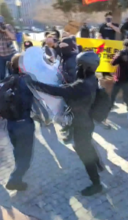 加利福尼亚州萨克拉门托警方在社交媒体上称,在萨克拉门头议会大厦外,也有一群身穿黑色衣服,戴着头盔手持盾牌的团体开始聚集在国会大厦附近的公园。警方称,他们走过了议会大厦前,并未发生暴力事件。