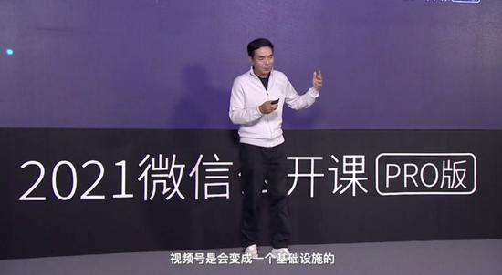 “现在每天有10.9亿用户打开微信,3.3亿用户进行视频通话。有7.8亿用户进入朋友圈,1.2亿用户发表朋友圈,其中照片6.7亿张,短视频1亿条。3.6亿用户读公众号文章,4亿用户使用小程序。”