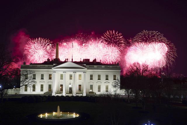 当地时间2021年1月20日,美国华盛顿,华盛顿特区上空烟花璀璨,庆祝拜登就任美国总统。