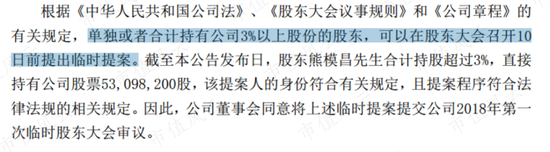 1月22日,熊模昌要求在2018年第一次临时股东大会审议事项中增加其提名的4名非独董、3名独董和2名监事候选人的相关提案。