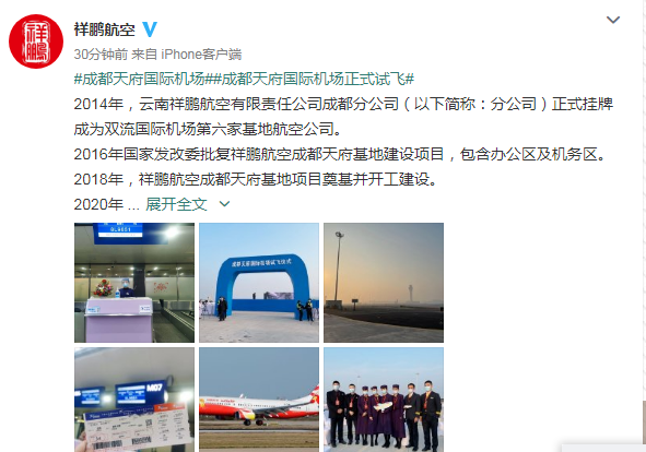 图片来源:成都日报锦观6架民航客机的到来,标志着天府国际机场真机试飞工作正式启动,意味着天府国际机场向开航投运又迈进了一大步。