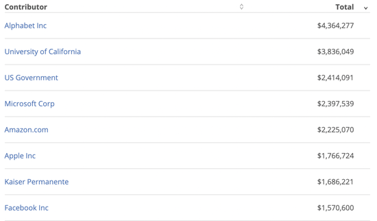 最心满意足的应该是硅谷的科技公司们。竞选财务记录显示,大型科技公司及其员工成为了拜登竞选的最大捐赠者。