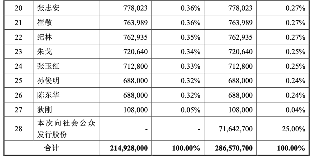 江泰保险当前股本为21492.8万股,本次拟公开发行7164.27万股普通股A股,不进行老股转让,发行后总股本为28657.07万股,本次发行股份占公司发行后总股本的比例不低于25.00%。