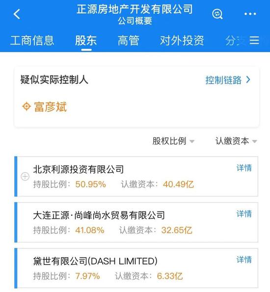 正源地产的实控人是富彦斌。相关报道显示,1964年,富彦斌出生于黑龙江省齐齐哈尔市富裕县,并从该县实验中学考入北大。富彦斌1992年创办大连正源房地产公司,之后公司快速发展,至2000年资本金已达到4000万元。