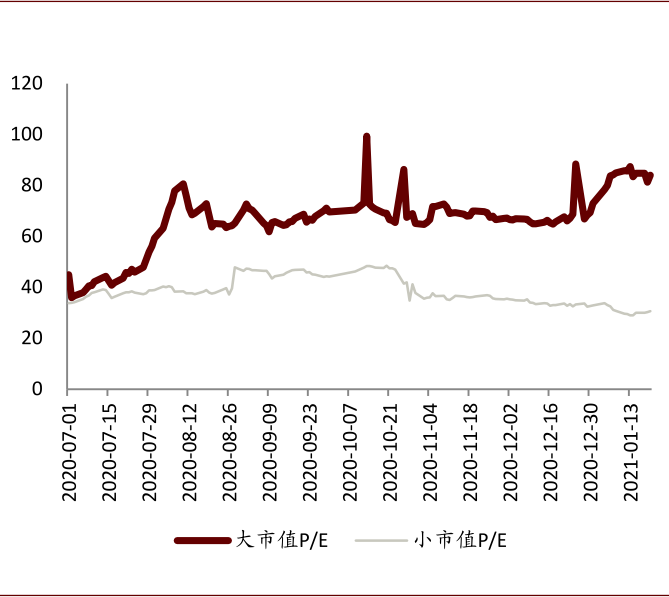 图表:零部件企业小/大市值TTM P/E走势(2020年7月至今)