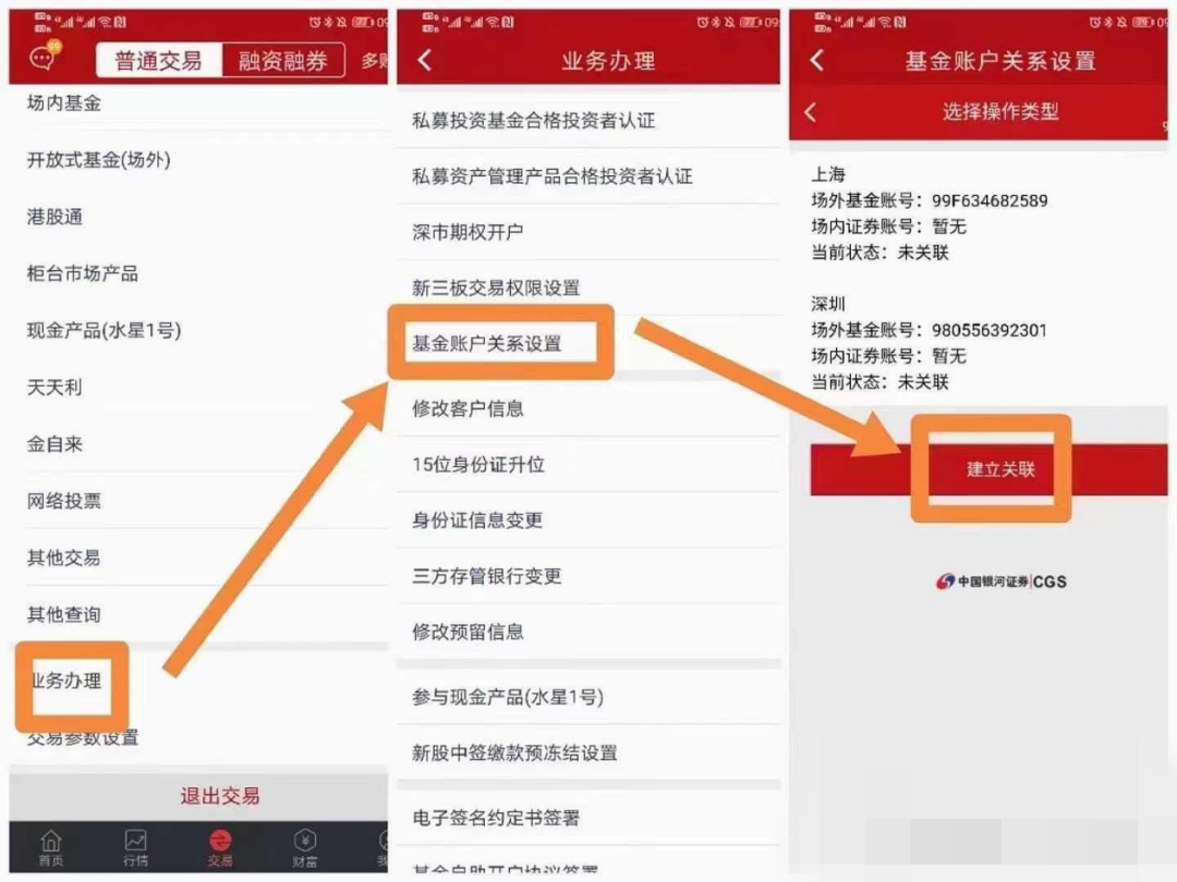 注意哦,在证券账户端也需要设置基金账户关系从而建立关联。