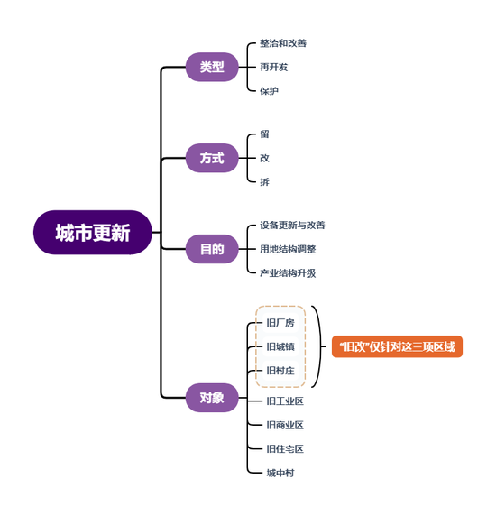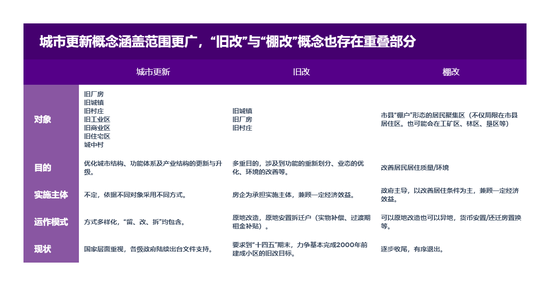 城市更新包含“棚改”与“旧改”,并且其面向的对象更多、包含的内容更广、覆盖面更宽以及可采取的手段更多样化。