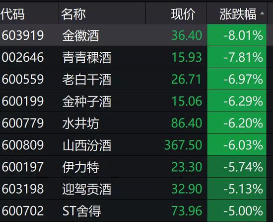 而跌幅居前的个股中,前期资金抱团特征突出的白酒、军工等板块个股占据了相当比例,资金抱团进一步松解
