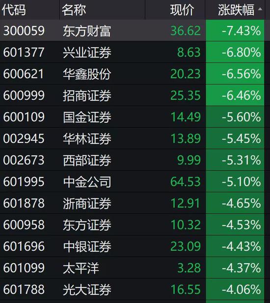 此外,“牛市旗手”券商股也多数回落。其中,上周被北向资金增仓3360万股的东方财富领跌,跌幅达7.43% 。招商证券跌幅达6.46%,中金公司跌幅达5.1%。