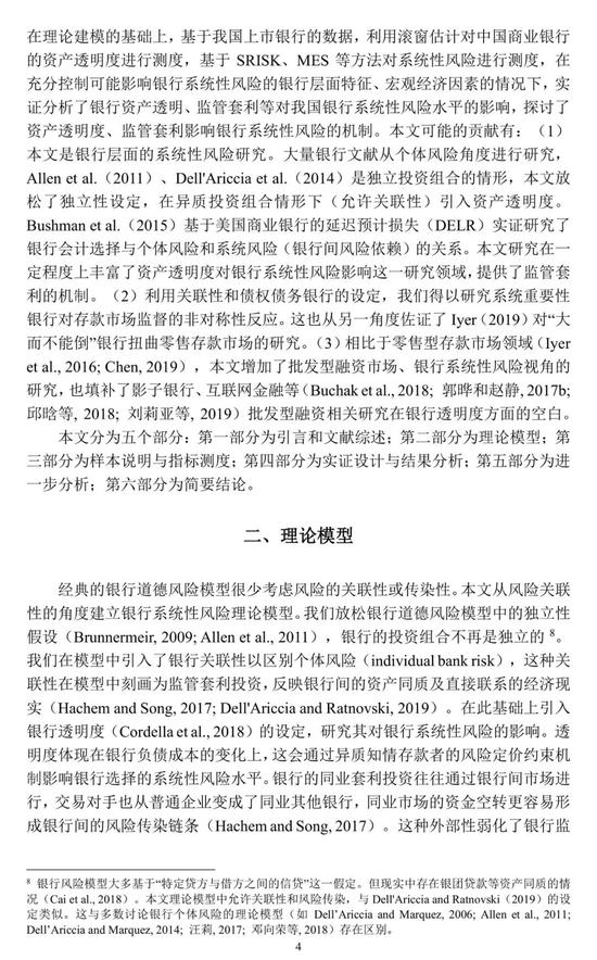 工作论文 | 资产透明度、监管套利与银行系统性风险