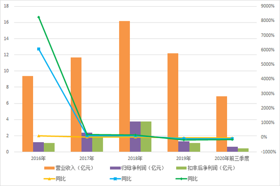 记者翻看广誉远近5年的财报发现,该公司财务数据波动很大。2016年至2018年,其经营状况非常好。三年间,其营业收入由9.37亿元增长至16.19亿元,归母净利润也由1.23亿元增长至3.74亿元。