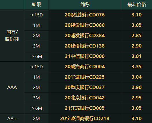 ▋同业存单二级成交矩阵