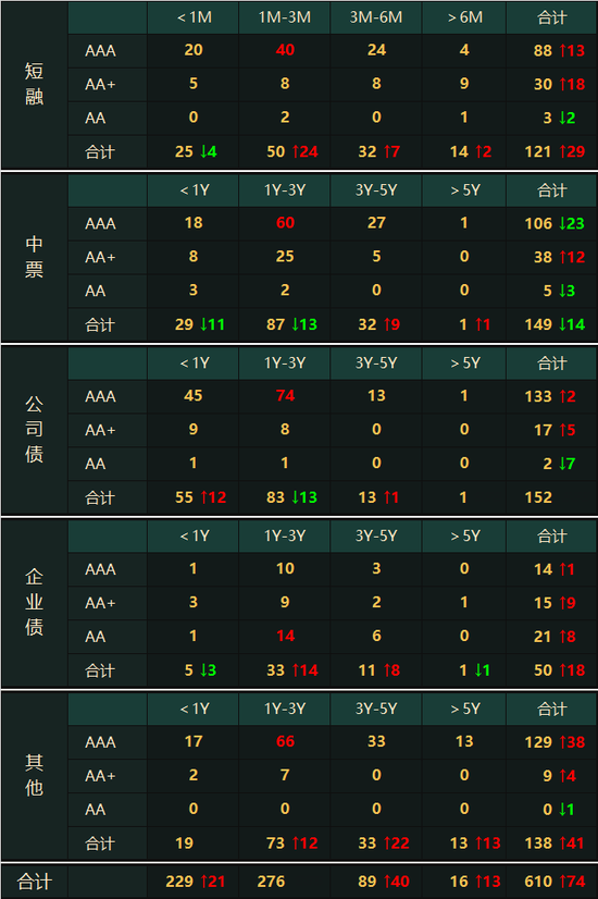 ▋各类型信用债各评级、期限成交笔数