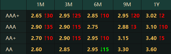 *红绿数字为较上一交易日变动bp