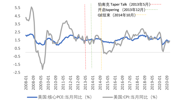 图2:2013-2014年缩减QE时的通胀水平偏低