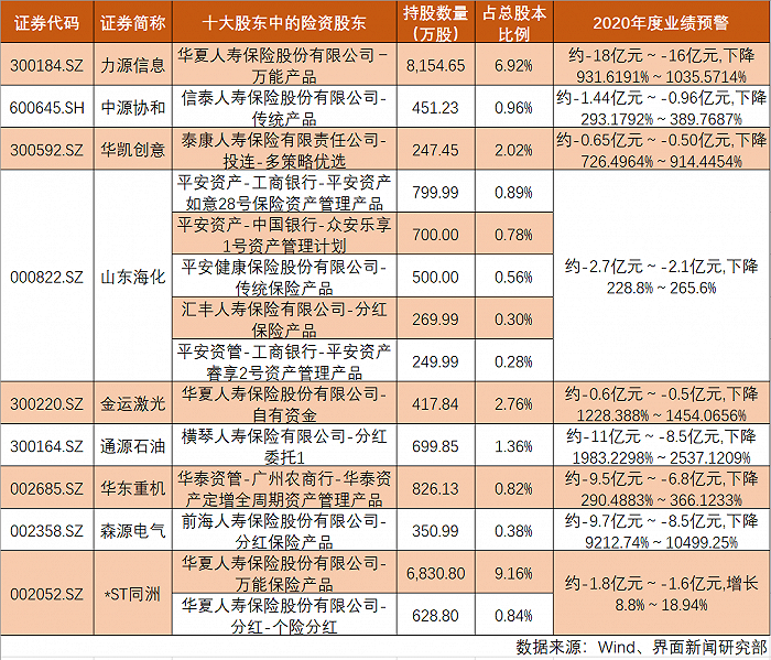 除了华夏人寿,还有其他保险公司持有业绩预亏的上市公司。