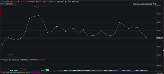不过自22日触碰96.45港元/股高点后,其股价开始回落,截至1月28日午间收盘仅仅一个多月时间累计下跌24.52%,市值蒸发331亿港元。