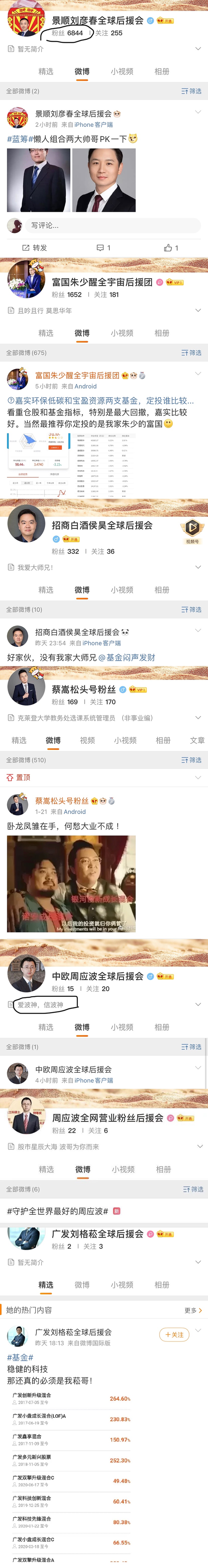 目前,易方达基金经理张坤、中欧基金经理葛兰、广发基金经理的微博超话已经建立起来,胡昕炜、朱少醒、王宗合、刘彦春、侯昊、周应波等基金经理的微博粉丝后援会也如雨后春笋纷纷拔地而起。
