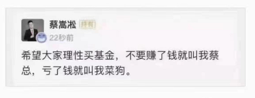 频频登上热搜的诺安基金蔡嵩松,在微博和各类基金论坛也有着相当大的讨论量,他被粉丝调侃为“赢了蔡经理,输了经理蔡”、“没有一个男人让我撕心裂肺,除了蔡嵩松”。除了拥有名为“蔡嵩松头号粉丝”的忠实粉丝,网络上关于他或真或假的流传度也非常广。