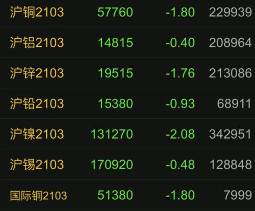 1月28日,有色金属板块整体下行。沪镍跌逾2%,沪铜、沪锌跌约1.8%。