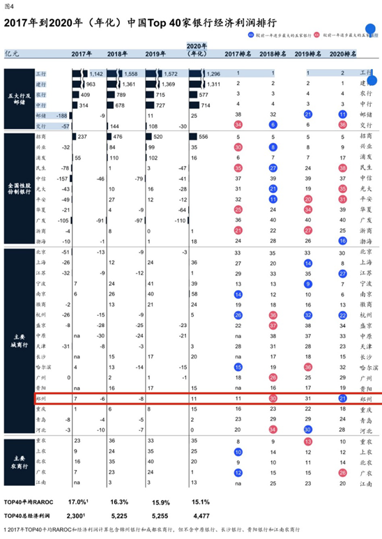 近日,全球知名咨询管理公司麦肯锡发布《中国TOP40家银行价值创造排行榜(2020)》,郑州银行在RAROC(经济资本回报率)和经济利润两项核心指标排名中分列全国TOP40银行的第16位和21位,分别较上年跃升19位和10位。