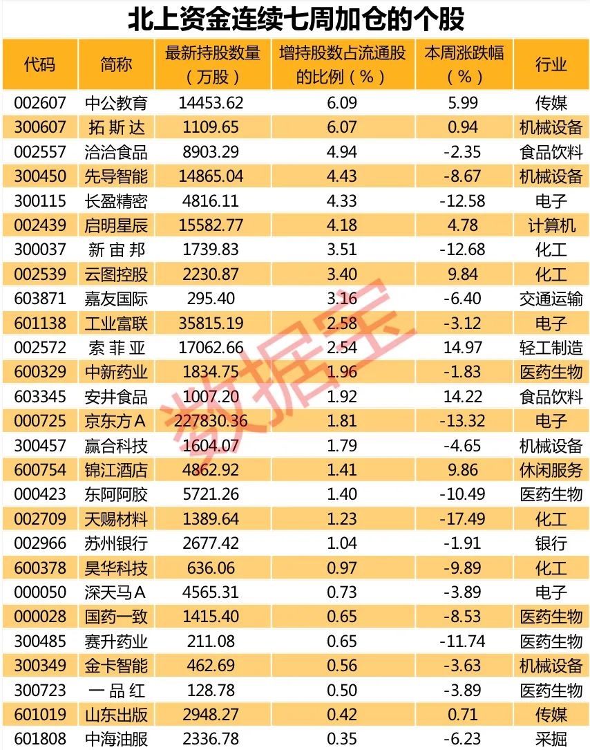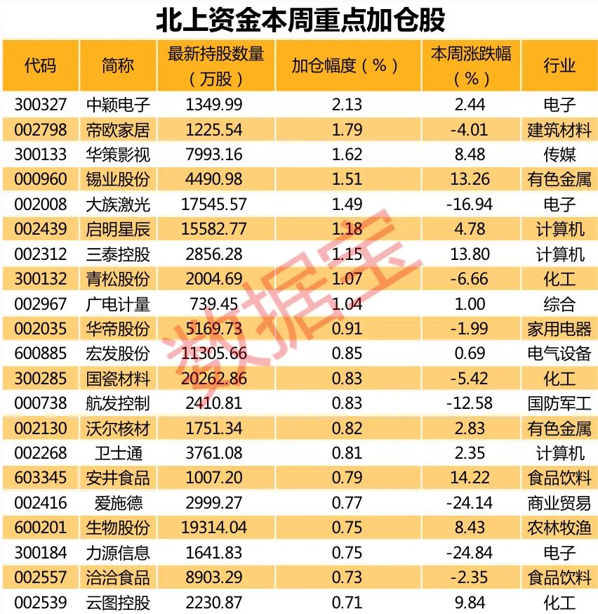 原标题:北上资金重点加仓股名单曝光!科技龙头获重金杀入,这个牛股板块遭大甩卖,聪明资金连续七周加仓这些股(附名单)