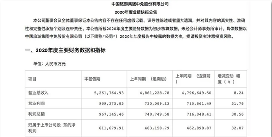 今日早盘,中国中免一度涨超7%报315.87元,市值超6100亿元。公司1月29日晚公布业绩快报显示,2020年营收526.18亿元,同比增8.24%;归母净利润61.17亿元,同比增32.07%。