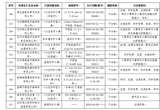 附件:2020年辽宁省非医用防护口罩产品质量监督抽查企业不合格名单