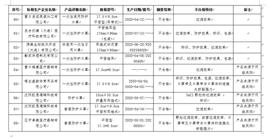 辽宁省市场监督管理局关于2020年非医用防护口罩产品质量监督抽查情况的通报