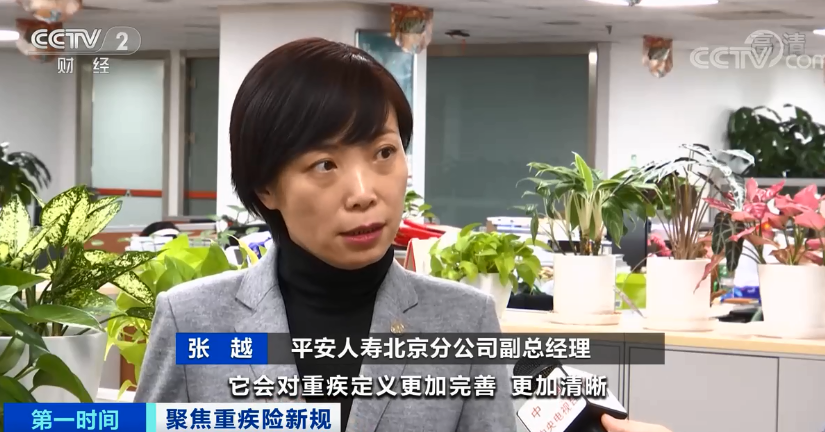 平安人寿北京分公司副总经理 张越:描述上它会对重疾定义更加完善、更加清晰,其实可以减少很多的大家对一些病症理赔过程当中的一些歧义,更加好地去维护客户的保障利益。