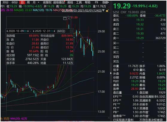 受业绩下滑影响,2月1日,东方日升开盘即一字跌停,全天未打开跌停板,截至收盘时,仍有跌停封单36.4万手,报收19.29元/股,总市值174亿元。