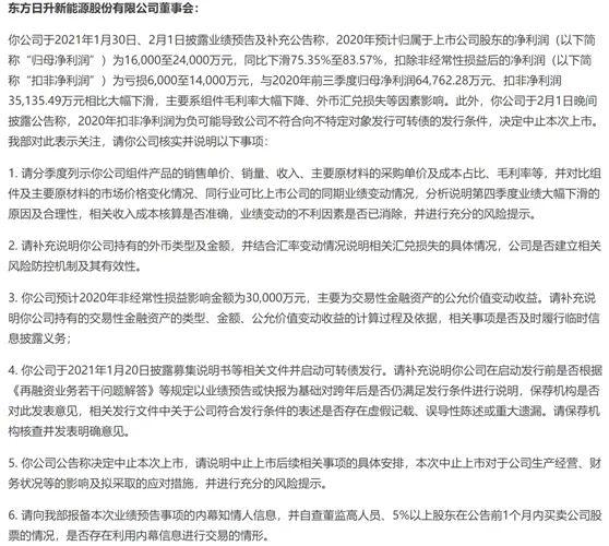 深交所也对此下发关注函,要求公司说明:第四季度业绩大幅下滑的原因及合理性;相关汇兑损失的具体情况;公司持有的交易性金融资产的类型、金额、公允价值变动收益的计算过程及依据;公司可转债相关发行文件中关于公司符合发行条件的表述是否存在虚假记载、误导性陈述或重大遗漏;公司可转债中止上市后续相关事项的具体安排;报备本次业绩预告事项的内幕知情人信息,并自查相关人员是否存在利用内幕信息进行交易的情形。