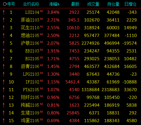 热点栏目2月2日,国内期市早盘分化明显,原油系走高,低硫燃油涨近4%,原油涨近3%,燃油涨逾2%,苯乙烯、乙二醇涨近2%,甲醇跌逾2%;黑色系普跌,动力煤跌近4%,铁矿石跌逾3%,硅铁跌近3%;农产品中,花生涨逾2%,豆二跌逾2%,豆一跌近2%。