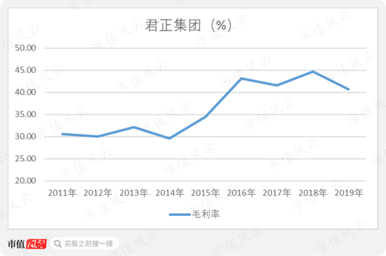 但这并没有影响2011-2019年期间,毛利率整体上升的趋势。2019年,君正集团实现毛利率40.64%,较去年同期有多下滑,但相比2011年的30.54%是有明显优势的。
