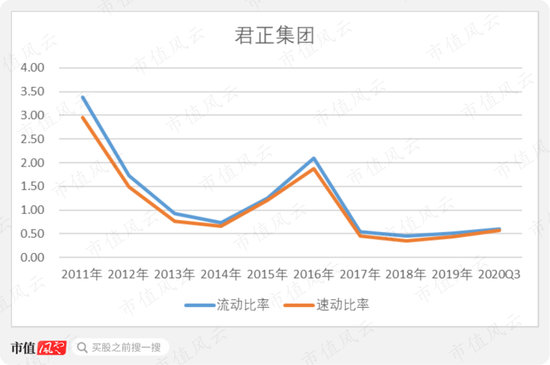但赚钱速度赶不上花钱速度,从2017年开始,流动比率、速动比率又进入了紧张的状态。截至2020年9月末,上市公司的流动比率、速动比率分别只有0.61、0.58。