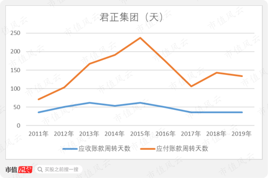 风云君还发现,上市公司应收账款周转天数也明显低于应付账款周转天数,可见其对于上下游的议价能力也不差。
