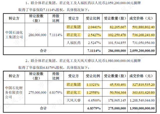 在募资之前,君正集团花费45.05亿元摘得了华泰保险15.30%股权;在募资之后,君正集团花费20.20亿元摘得了华泰保险6.97%股权。