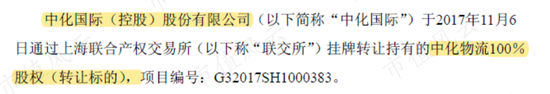2017年11月,中化国际拟转让持有的中化物流100%股权,挂牌价格34.50亿元。