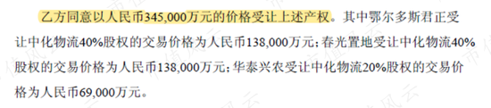 这次,君正集团联合了春光置地、华泰兴农两家公司,成功摘牌中化物流。其中,君正集团获得了40%股权,交易价格13.80亿元现金。