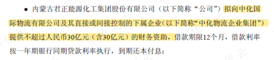此外,作为摘牌附加条件,君正集团还为中化物流提供了80亿元的担保,以及30亿元的财务资助。